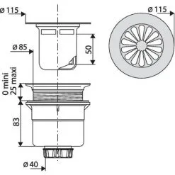 Bonde serverse en laiton chromé pour évier diamètre 50mm.