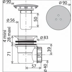 VALENTIN Bonde Pour Receveur De Douche Sans Capot, Diam.90 Mm
