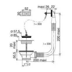 Bonde à Bouchon Et Trop-plein Latéral Valentin, Bonde + Trop Plein
