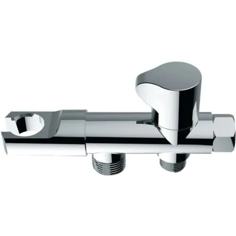 Robinet d’arrêt 3 voies hygiène, avec support douchette, laiton chromé référence 90560000000.
