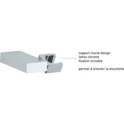 Support Douchette Mural Rectangulaire Articulé, Fixation Invisible, Laiton Chromé Valentin