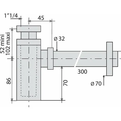 Siphon laiton Kubik, avec sortie murale et rosace pour tout type de vasqueSiphon de lavabo modèle long réglable en hauteur min 50/max. 120 mm – sortie murale longueur 300 mm avec rosace Avantage produit :