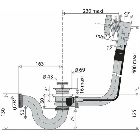 Capot ABS Chrom_ 120mm Avec Tube Garde D’eau Pour Bonde Diam�tre 90 Mm VALENTIN 032500.000.00